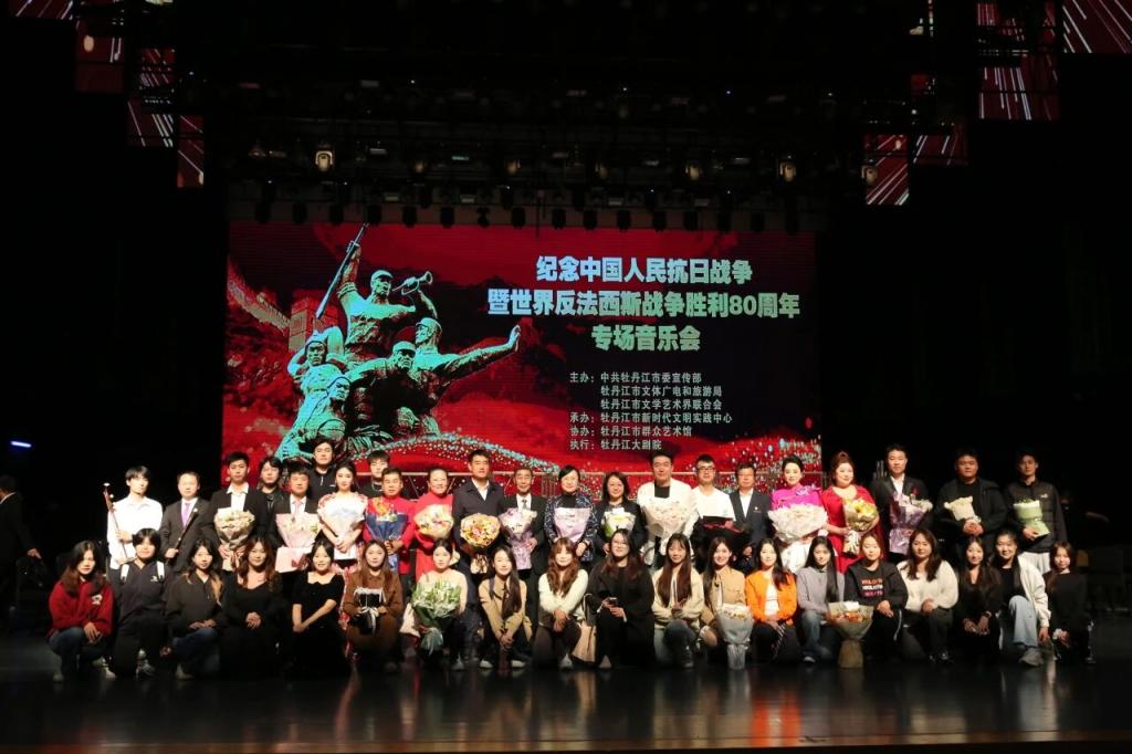 9月30日,纪念中国人民抗日战争暨世界反法西斯战争胜利80周年专场音乐会在牡丹江大剧院隆重上演。本场音乐会由中共牡丹江市委宣传部、市文体广电和旅游局、市文联联合主办,牡丹江师范学院音乐与舞蹈学院师生参演。音乐与舞蹈学院院长尹茂源、副院长田野莅临现场观看演出,声乐系主任潘栗、教师杨光宇、王雪、李心竹、王鹤然,器乐系教师李鑫春、张龙元及学生受邀参加演出。