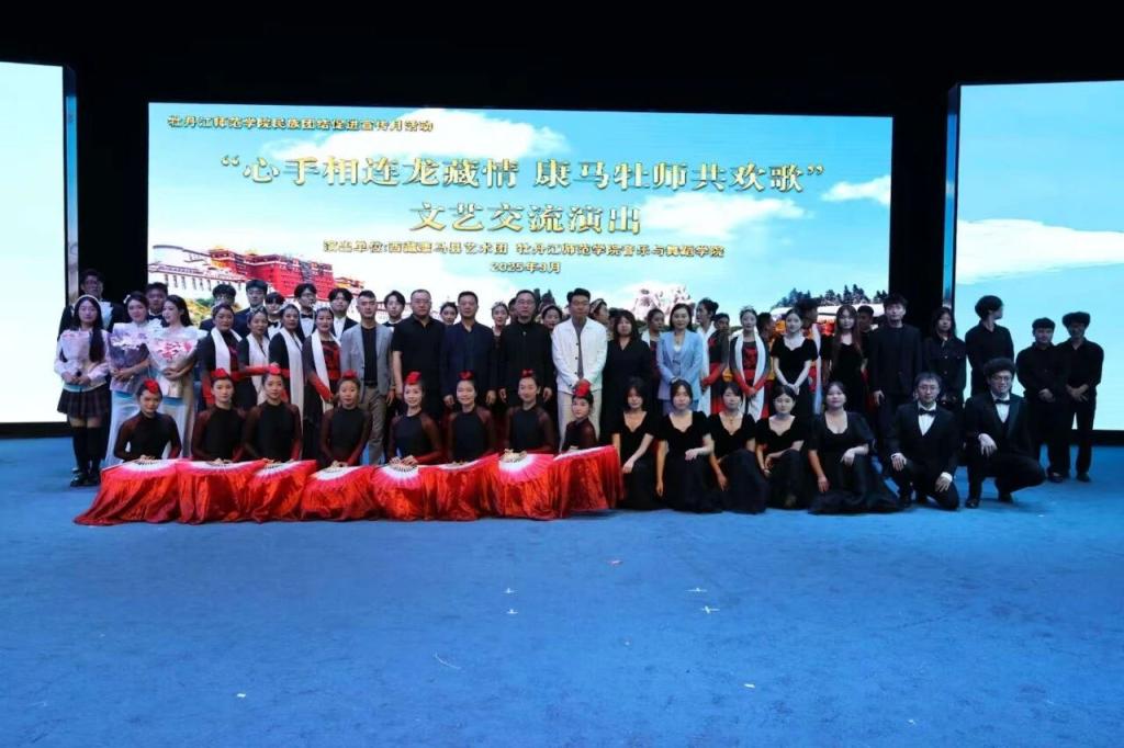 音乐厅文艺演出接力开启,“心手相连龙藏情·康马牡师共欢歌”文艺交流演出正式拉开帷幕。音乐与舞蹈学院学生代表与康马县艺术团表演者们在乐器与歌声的交融、传统与民族的碰撞中,为现场观众呈现了一场兼具文化深度与艺术美感的视听盛宴。