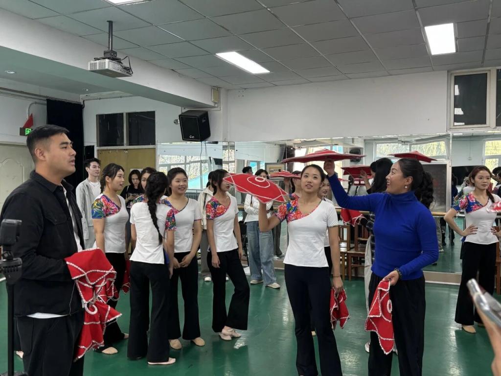 表演结束后,舞蹈系副主任史博文与学生代表主动向康马县艺术团成员讲解“手绢花技巧”,双方围绕舞蹈动作设计、风格特色表达展开深入探讨,在欢声笑语中赞叹中华传统文化的多元一体,为后续合作筑牢基础。
