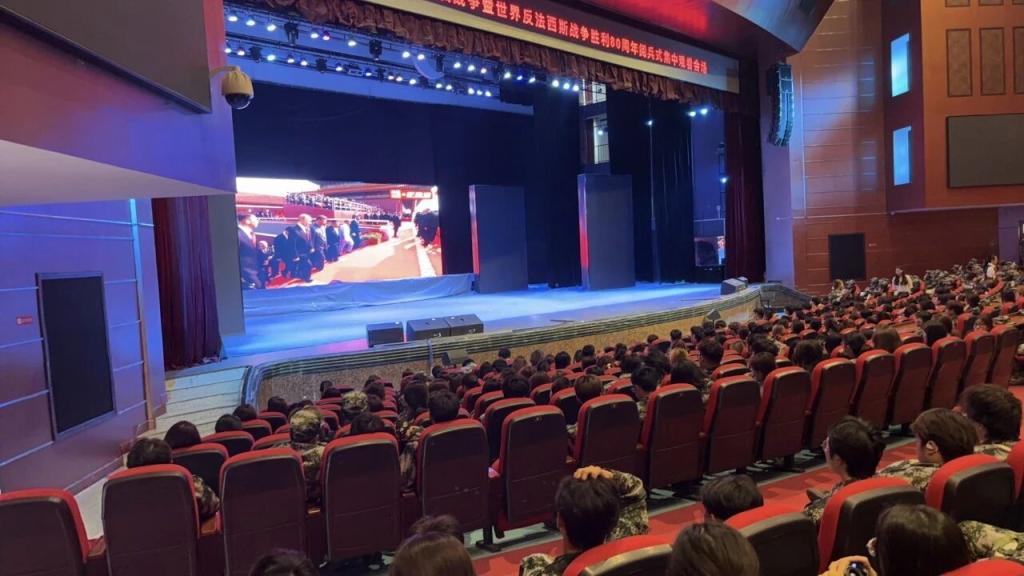 观看过程中,师生们凝神屏息,眼中闪烁着激动与自豪的光芒,步伐整齐划一的方阵队伍让师生们深受震撼,共同见证这一承载着民族记忆与时代强音的庄严盛典。