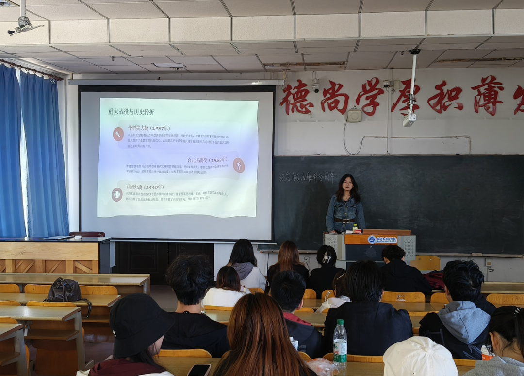 活动中,各班团支部通过播放视频、分享珍贵历史照片与讲解文献资料,带领同学们回顾抗日战争光辉历程。同学们透过史料仿佛穿越时空,直观感受到中国军民在艰苦环境中奋勇抗敌的壮阔画面,对那段浴血奋战的岁月有了更深刻的认识。