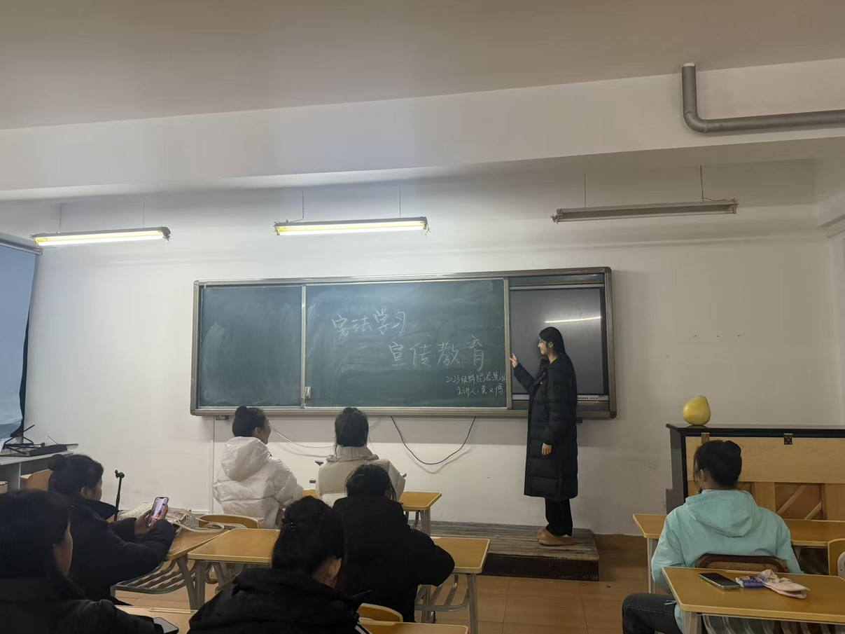 为深入贯彻落实宪法学习宣传教育要求,进一步在学生中普及宪法知识、弘扬宪法精神,10月26日,音乐与舞蹈学院25级舞蹈表演及声乐表演专业全体同学在艺体楼401开展了宪法学习宣传教育主题活动。