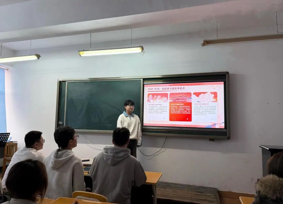 活动中,各班团支部通过观看纪录片、展示图片资料、组织学习讨论等多种形式,生动再现了国家发展历程中的重大事件与历史性变革。同学们全神贯注,现场气氛庄重而热烈。通过这次活动,同学们更加真切地感受到祖国从站起来、富起来到强起来的伟大飞跃,内心充满了强烈的自豪与感动;当看到一代代建设者为国家发展无私奉献、不懈奋斗时,大家深受触动与鼓舞,也更加清晰地认识到新时代青年所肩负的责任与使命。