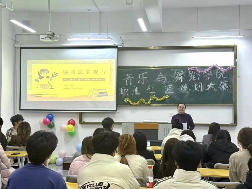 为提高学生职业生涯规划意识与求职能力,引导学院学生树立正确的成才就业观,10月31日,音乐与舞蹈学院于实训楼807举办大学生职业生涯规划大赛。学院党委副书记杨柳,团总支副书记、辅导员赵莹,辅导员焦福钰、吕月老师担任本次大赛评委,大赛由2024级学生张小薛主持。