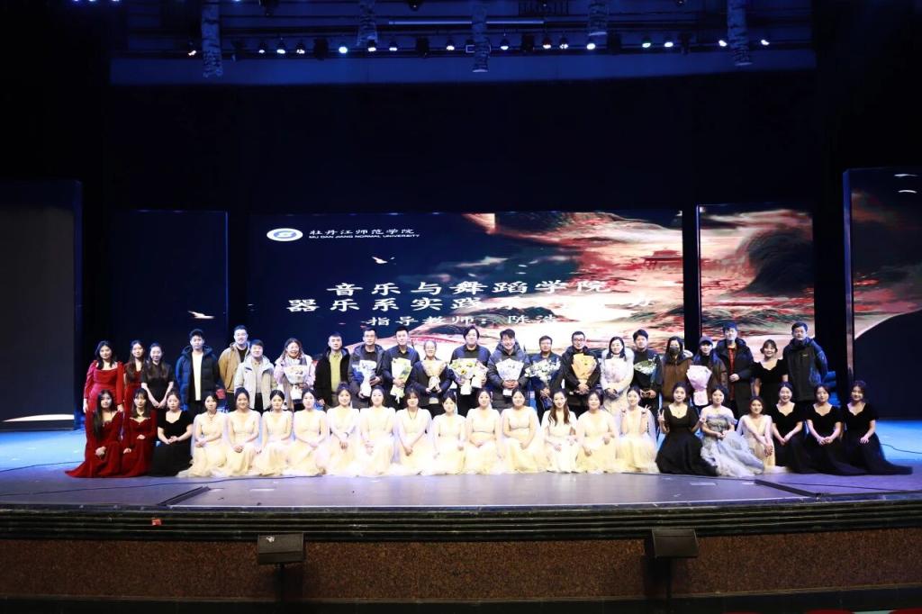 为深化教学改革,展现器乐系实践教学成效,11月19日下午,音乐与舞蹈学院器乐系实践系列活动之《舞台艺术实践》教学成果音乐会在第一音乐厅奏响。学院院长尹茂源、副院长田野、各系部主任、部分教师及特邀专家费邓洪、牡丹江市音乐协会副主席王建国、牡丹江大剧院副总经理赵旭贵共同见证这场凝结师生心血的艺术盛宴。